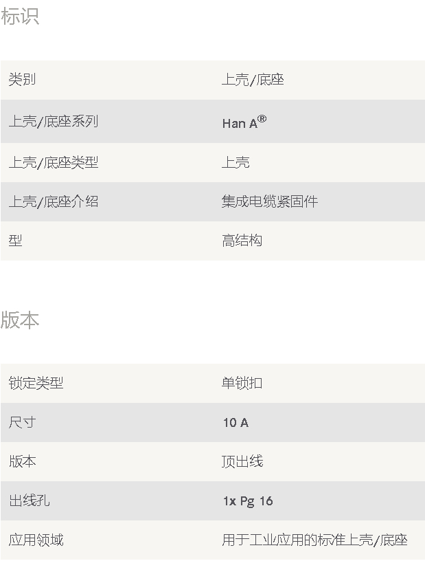 上壳, 集成电缆紧固件, 尺寸: 10 A, 高结构, 单锁扣, 顶出线, 1x Pg 16, 材料 (上壳/底座): 压铸铝, 粉末涂层, RAL 7037(土灰), 防护等级: IP65