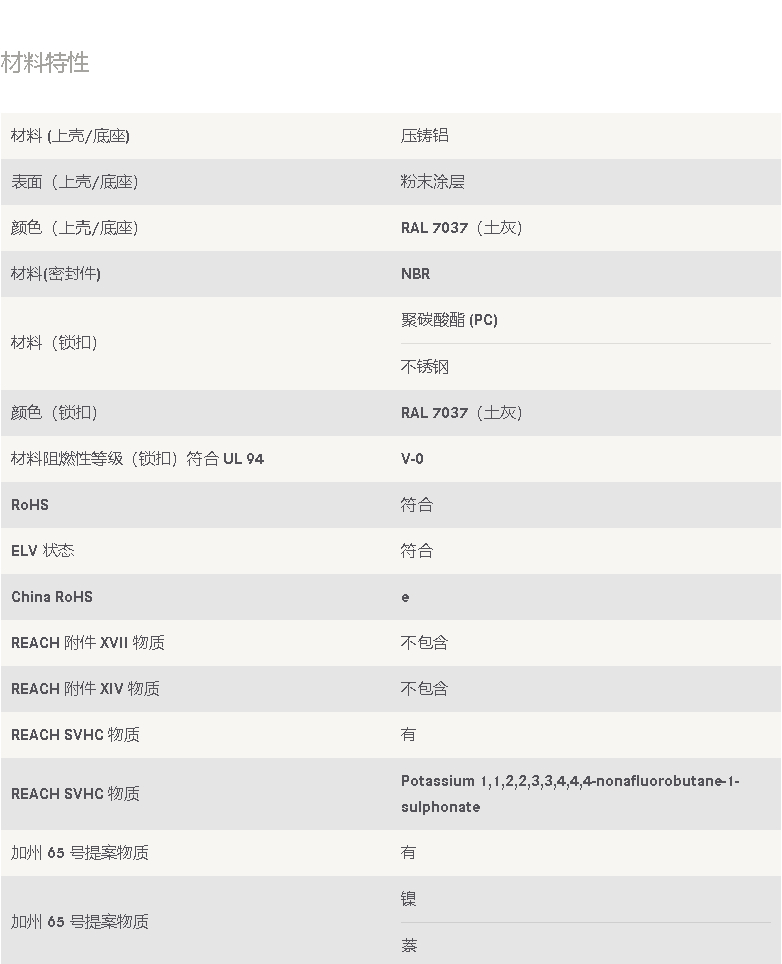 表面安装底座, 尺寸: 24 B, 高结构, 单锁扣, 聚碳酸酯 (PC), 不锈钢, 边出线, 2x M32, 材料 (上壳/底座): 压铸铝, 粉末涂层, RAL 7037(土灰), 材料(密封件): NBR