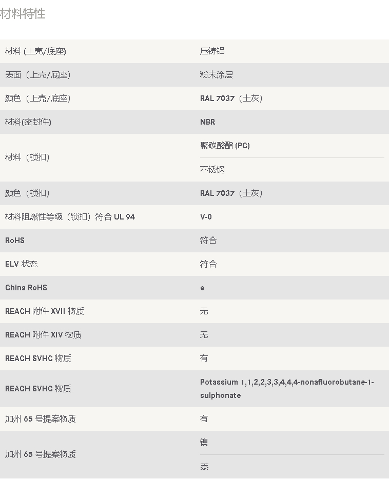 表面安装底座, 尺寸: 16 B, 高结构, 单锁扣, 聚碳酸酯 (PC), 不锈钢, 边出线, 1x M32, 材料 (上壳/底座): 压铸铝, 粉末涂层, RAL 7037(土灰), 材料(密封件): NBR