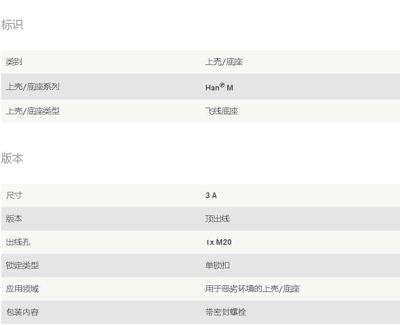 飞线底座, 尺寸: 3 A, 单锁扣, 不锈钢, 顶出线, 1x M20, 材料 (上壳/底座): 压铸锌, 粉末涂层, RAL 9005(乌黑)