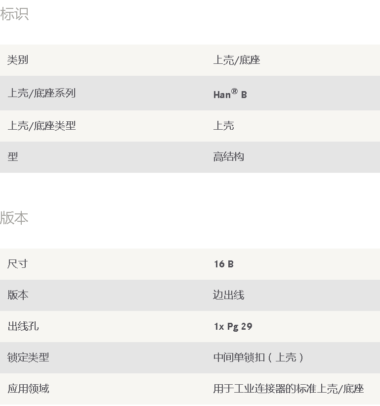 上壳, 尺寸: 16 B, 高结构, 中间单锁扣(上壳), 不锈钢, 边出线, 1x Pg 29, 材料 (上壳/底座): 压铸铝, 粉末涂层, RAL 7037(土灰), 防护等级: IP65