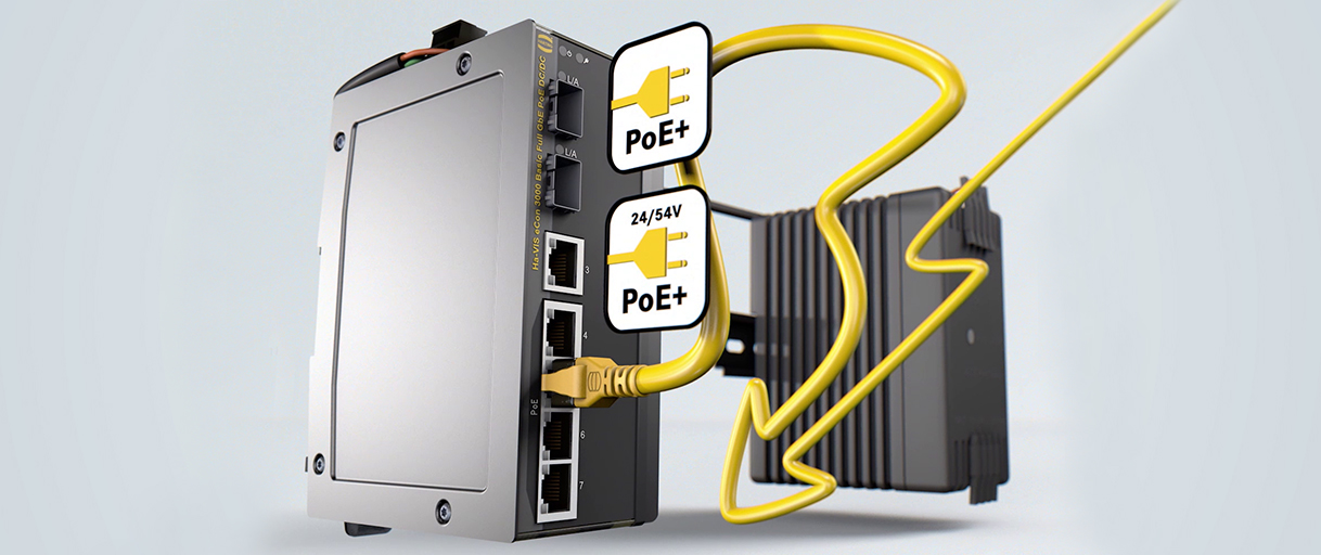我们带集成 DC/DC 转换器的交换机支持使用带标准 24VDC 电源的 PoE+。这节省了因布线和额外电源而产生的时间和成本。